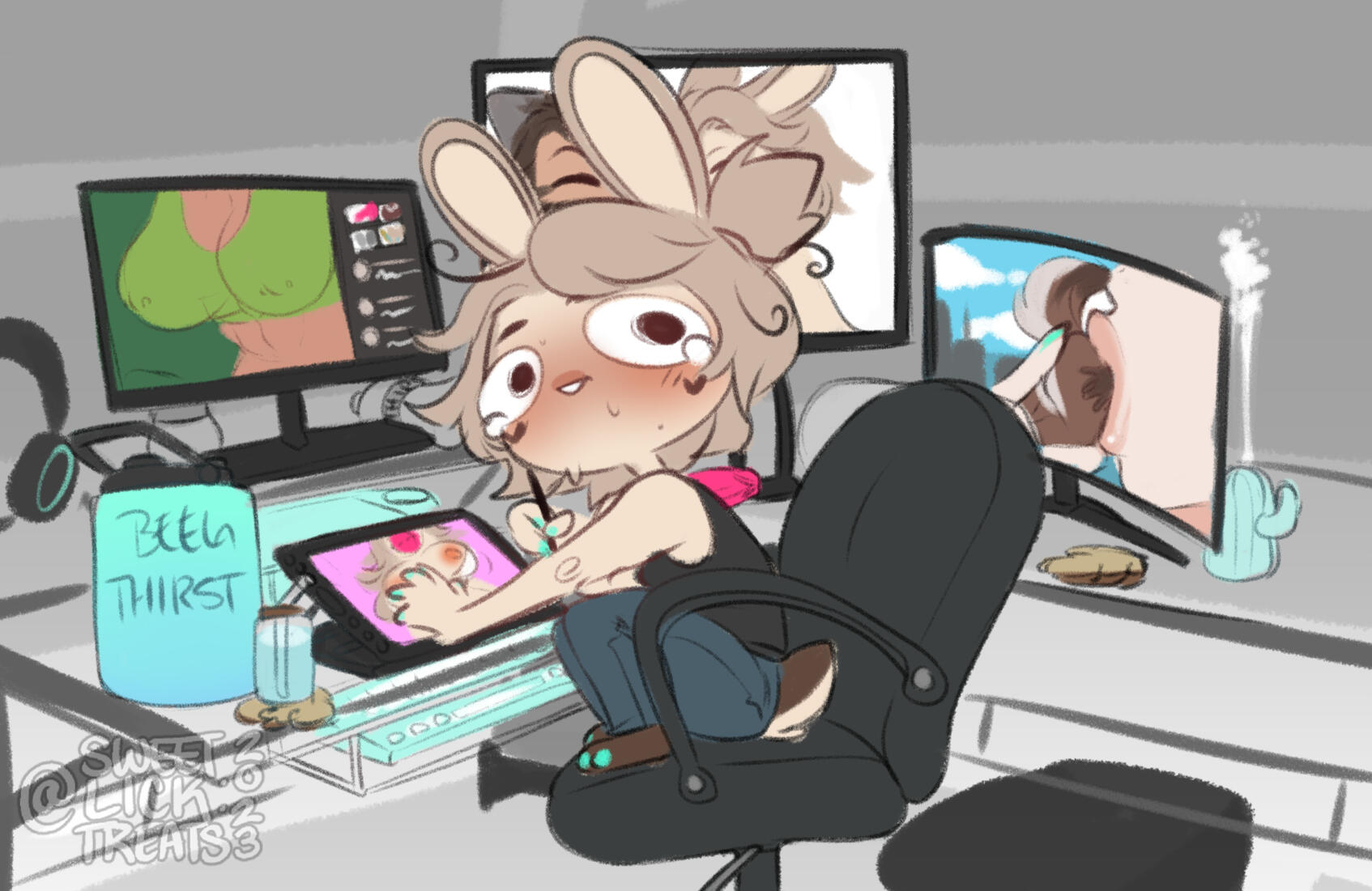 Heyo! A short stop for links and some important info. Currently just a freelance illustrator that draws too many lewds. My current projects are working on sequences and comics while drawing slice of life and smut in between.